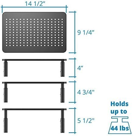 - SLEEK, FASHIONABLE, ELEGANT DESIGN makes this monitor riser a very nice accessory for your desk and office. Make of durable black steel. It’s smooth and feels great with vented top surface. Holds up to 44 pounds including most monitors.