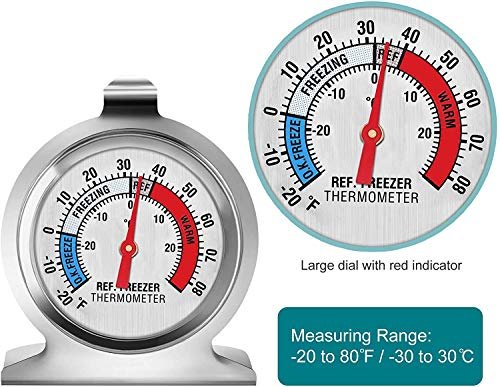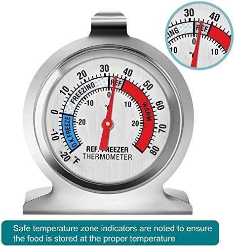 Large Indicator: An easy-to-read extra-large screen provides easy and quick read, the dial displays proper temperature zones for refrigerator and freezer, ensuring a safe temperature zone for your food.
