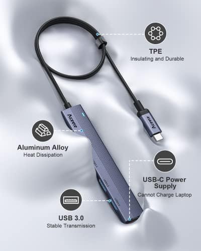 Aceele USB C Hub 4 Ports, Aluminum USB C to USB Hub with 2ft Extended Cable