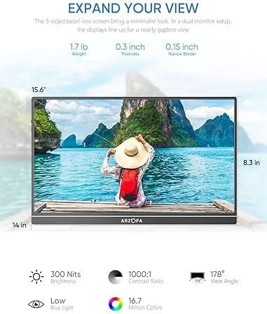 - [Lightweight and Portable] Keeping in mind the portability of the monitor, we havecreated a lightweight and easy to carry screen which weighs 1.7lbs and is 0.3-inch slim.Your work gets done efficiently while you are on the trip.