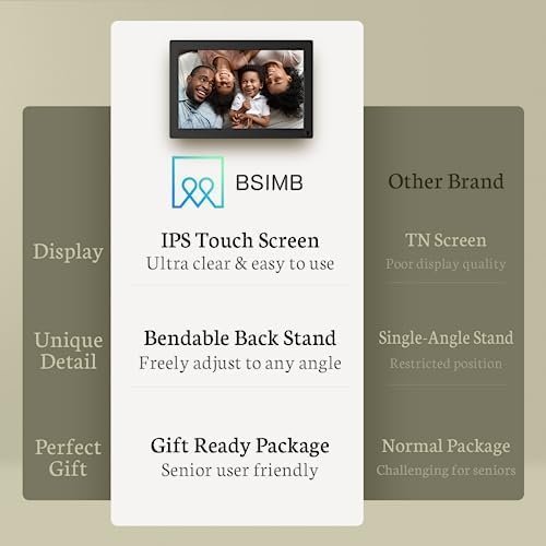- All-in-one frame: Designed with multi-functionalities (music/weather/alarm/calendar…), BSIMB digital WiFi frames will become a source of entertainment for the whole family. Also built-in sleep mode and motion sensor to save energy. The frame can be freestanding or wall mounted in both landscape and portrait with auto-rotation.