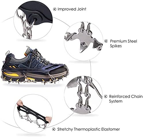 Widely used and unisex: Suitable for male and female of any age including teenagers,adult,elders. Used on angled terrain,ice roads,icy driveway,mud and wet grass,dangerous sections of trail,etc.Great for trail running,hiking,and ice fishing
