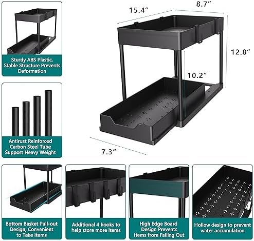 DEKAVA Under Sink Organizer 2 Pack,Bathroom Cabinet Organizer,2 Tier Sliding