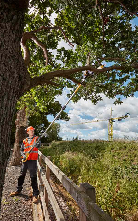 - High-efficiency brushless motor – Delivers up to 55 cuts on a 100x100mm branches