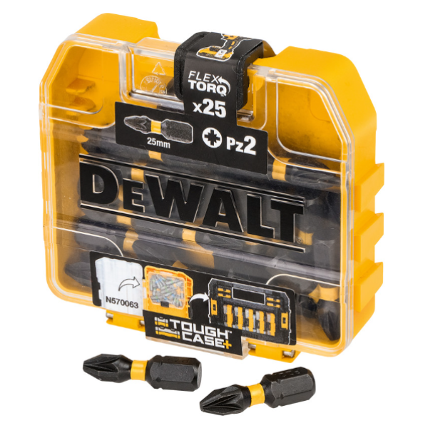 • Includes 11x 25mm PZ (2x #1, 6x #2 and 3x #3), 6x TX (T15, T20, T25, T27, T30 and T40), 9x Phillips (1x #1, 6 x #2 and 2 x #3), 4x slotted bits (3, 4, 5 and 6mm), hex to ¼” adaptor and lockable magnetic bit holder
