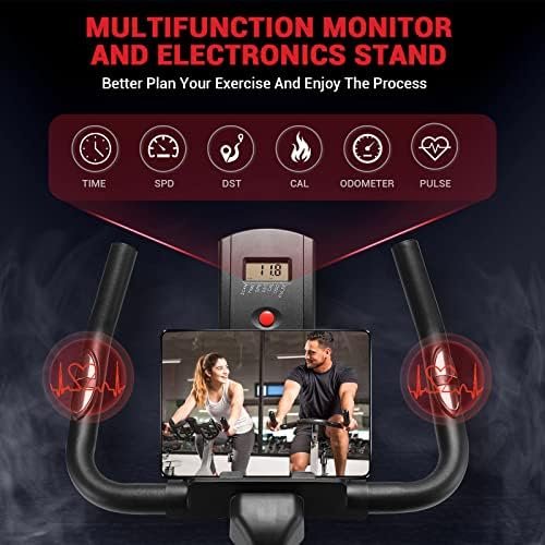 【Better Plan Your Workout】 The monitor on our stationary bike can captures your time, spd, dst, cal, odometer, and grasps the movement progress in real time. The hand-held pulse shows real-time heartbeat, which is very necessary for some people in need.