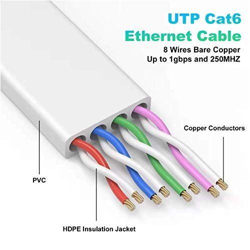 - PREMIUM MATERIAL: Our 50 feet ethernet cable is also made of 8 copper wires. The performance of UTP (Unshielded Twisted Pair) can be as high as 250 MHz and is very flexible. It can be tightly wound in a corner without affecting the speed. Crosstalk, noise and interference rarely occur