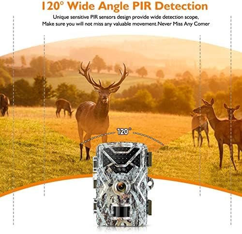 【EXCELLENT NIGHT VISION &120° Wide Angle】 The game camera built-in 34pcs 850nm infrared lights.Low-glow infrared technology is more concealed and not easily detected by animals.And this trail camera has 120°wide-angle detection range, which can capture more wonderful images and allow you to get a wider field of view.