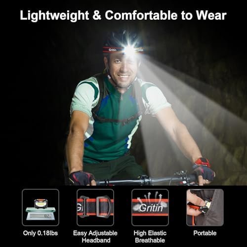 Headlamp, Gritin [2 Pack] COB Super Bright LED Head Lamp Headlight, Adjustable