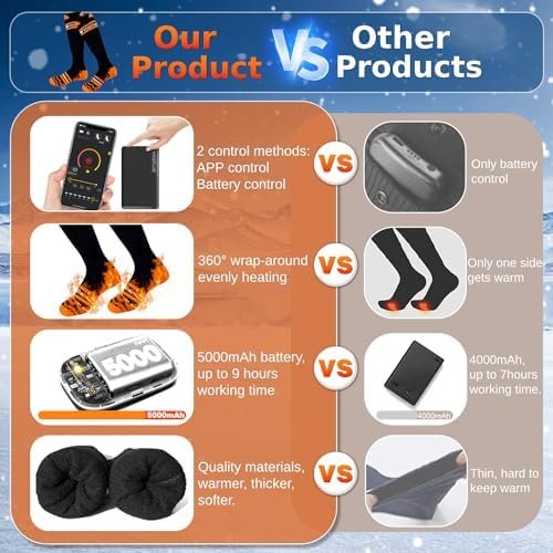 Heated Socks for Men Women Electric Heated Socks 5000mAh Rechargeable Battery