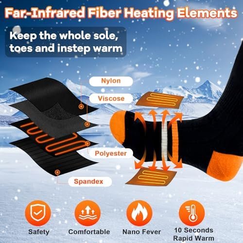 🔥【Best Gift Choice】The heated ski socks for women washable is suitable for a variety of winter outdoor activities such as skiing, hiking, fishing, hunting, biking and more. Not only can help you keep the feet warm, but also promote blood circulation and reduce soreness. Best gift choice for your family and friends, giving warmth to the people you love.