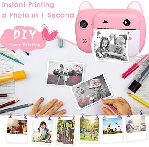 Instant Print Camera for Kids, Upgrade Selfie Kids Camera, Digital Zero Ink