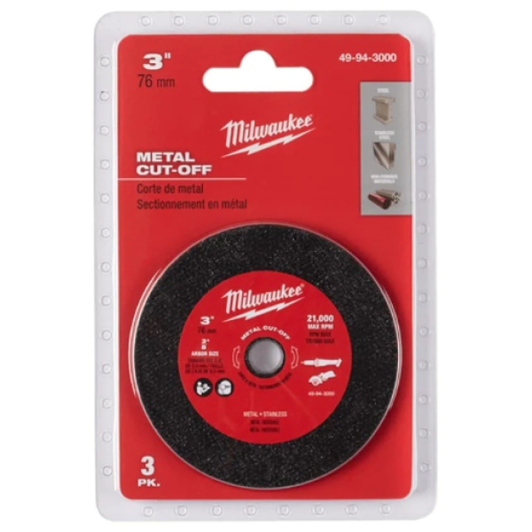 - For use with Milwaukee M12 FUEL™ 3″ Cut Off Tool (M12FCOT-0) and other cut-off tools with a 10mm (3/8″) arbor.