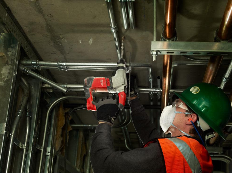 Milwaukee rotary hammer utilizes AVS anti-vibration system to keep you working strain-free