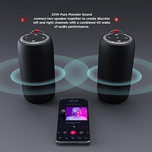 - Bluetooth Speakers: 20W True Wireless Stereo Pairing-connect two 20W Monster S310 speakers together through a single device to create independent left and right channels with 40W audio performance. 360° stereo sound effect, truly enjoy the surround sound of the cinema, a truly unparalleled listening experience.