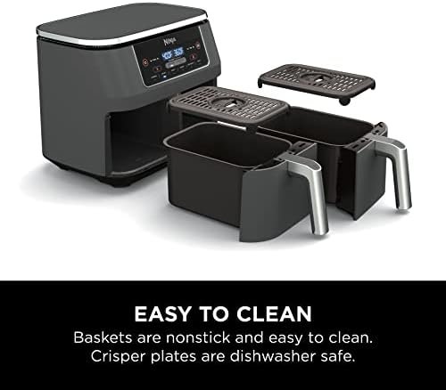 Dualzone technology features smart finish feature for cooking 2 foods 2 ways that finish at the same time, and a match cook button to easily copy settings across zones for full 8 quart capacity
