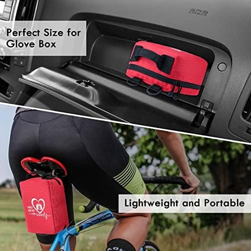 🧰【Compact Design, Additional Space】This first aid bag is easy to carry with an overall dimension of 7.9” x 5.9” x 3.6” and a weight of only 1.3 lbs. It can be stored in your home med cabinet, car, college dorm room, RV, or attached to a bike or motorcycle. The additional space allows you to add custom items if needed.