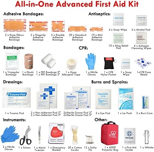 🏥【Comprehensive First Aid Supplies】This trauma first aid kit contains a complete set of first aid treatment products. Please see the product images and description below for a full list of contents. It’s ideal for home, workplace, outdoors, travel, boating, camping, hiking, and any kind of emergency situation.