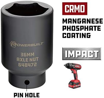 Powerbuilt 1/2-inch Drive Axle Nut Socket, 36mm 6 Point Extra Deep, Remove Front
