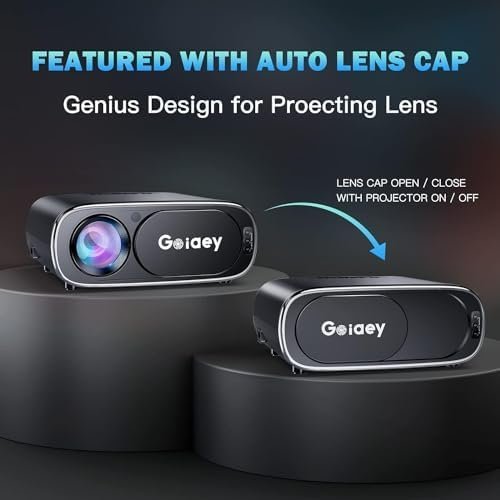 - [PROJECTOR 4K SUPPORTED WITH 100” PROJECTOR SCREEN] Goiaey native 1080P HD projector has stunning 16:9 & 4:3 projection, improving 20% brightness with low noise. With 4K resolution and 20000:1 contrast ratio, GO1 movie projector delivers crystal clear widescreen imaging. Bonus with included 100″ anti-light outdoor projector screen improves the contrast ratio by 20% for a more colorful image to protect our eyes, Enjoying a really true movie theater experience at home with your family.