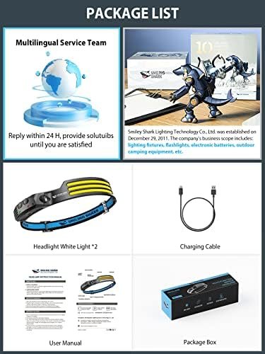 Smiling Shark LED Rechargeable Headlamp, 230°Wide Angle 2 Pack 3*White Light