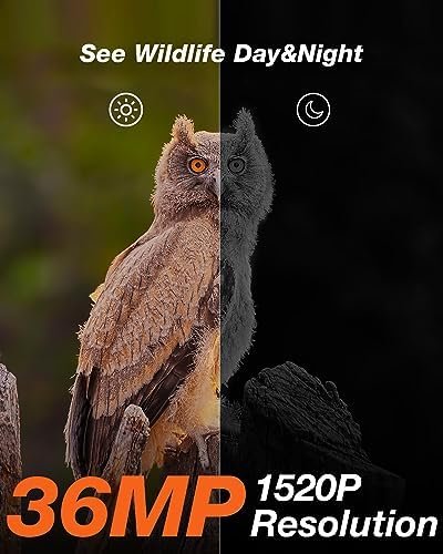 【Ultra-high 1520P 30fps 36MP Resolution & Advanced No-Glow Night Vision】1520P 30fps 36MP ultra-high resolution makes the game camera capture excellent images and clear audible videos, presenting rich details in the photos and footage. With the no-glow night vision feature, it takes recordings silently without disturbing animals. You will never miss a shot.