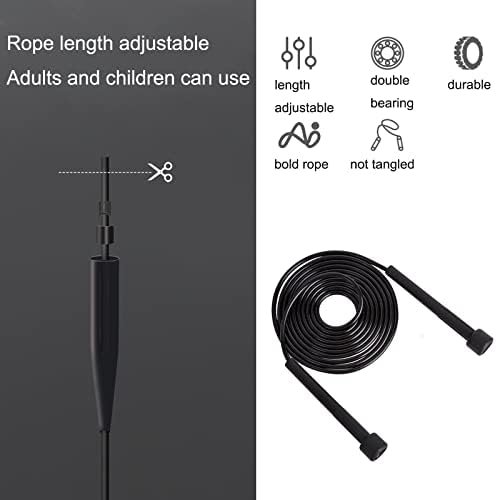 Adjustable Length Skipping Rope: Our jump rope is 9ft long, with convenience length adjustable piston Ring, you can change the rope length according to your height, suitable for different height of men women adults and kids.