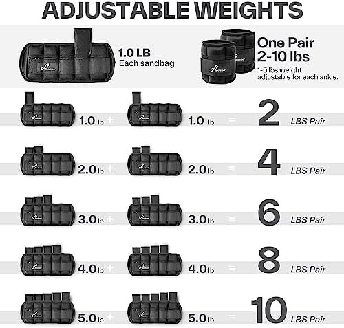 Sportneer Adjustable Ankle Weights 1 Pair 2 4 6 8 10 Lbs Leg Weight Straps