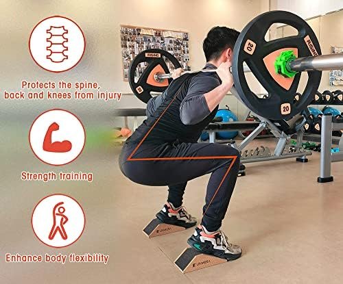 [SQUAT WEDGE BLOCK ]:squat wedge for heel elevated squat during the squat. improve leg strength and hip flexibility while improving your squat form to avoid muscle strain and knee injuries during squat training. squat wedge for weight lifting, calf stretcher, yoga wedge, and great for stretching and balance workouts.