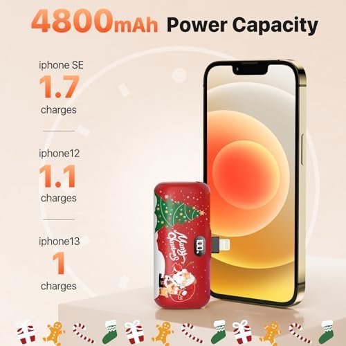 - What You Get: 1*Christmas portable charger, 1*USB-C charge cable, 1*user manual. Normally, if your phone case thickness more than 4mm, you’d better remove your phone case to charge your iPhone. Speciall design gifts for Christmas/Mom/Wife/Dad/Her/Him/Women/Men