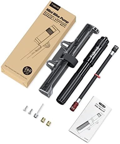 【More Convenient】: The mini aluminum pump is very convenient to carry, weighs only 5.3 ounces, and is 7.8 inches long. It can be fixed under a bicycle rack or a water bottle cage with a mounting bracket, without the click or the loss of the portable mini pump.
