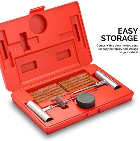 COMPLETE SET INCLUDES: This tire repair kit with plugs comes in a blow mold case that keeps organizing your plugs, and repair tools easy. Each kit includes: 1 T-handle insert tool, 1 T-handle spiral probe tools, 2 Hex keys, 30 String plugs