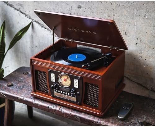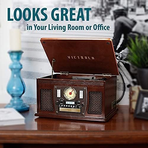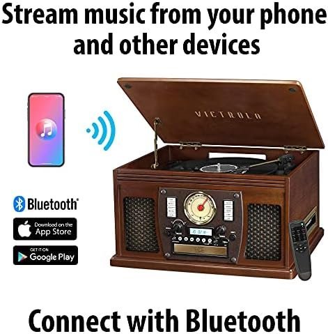 Victrola 8-in-1 Bluetooth Record Player & Multimedia Center, Built-in Stereo