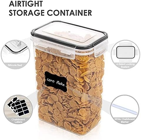 Vtopmart Set of 9 Airtight Food Storage Containers with Lids,Plastic Kitchen Pantry Organizers and Flour Storage,BPA Free Dry Food Keepers, 2L Cereal Containers with 24 Labels,Black