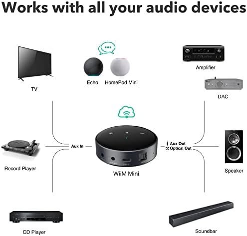 - SEAMLESS MULTIROOM STREAMING – Experience the ultimate convenience of streaming music throughout your entire home with WiiM Mini. Enjoy seamless integration with a range of smart speakers, such as AirPlay 2 and our exclusive multiroom feature. Effortlessly form groups with other AirPlay 2 or Alexa devices like Echo and HomePod, or connect multiple WiiM devices for synchronized playback across various audio devices simultaneously.